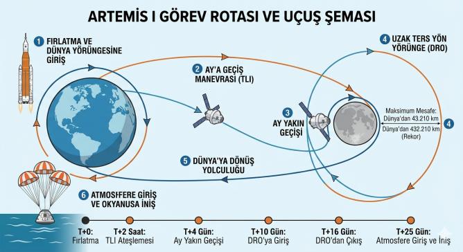 Rekor Uzaklık, Yeni Hedefler Artemis I görevi, Orion uzay aracını Dünya'dan tam 432.210 km uzağa taşıyarak, Apollo dönemindeki tüm insanlı araçların rekorunu kırdı. "Uzak Ters Yön Yörünge" (DRO) adı verilen bu rota, Ay’ın kütleçekimini adeta bir sapan gibi kullanarak aracın güvenle geri dönmesini sağladı.
