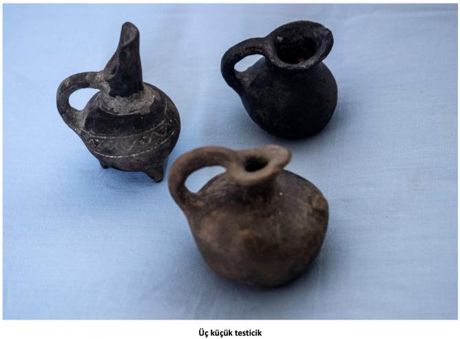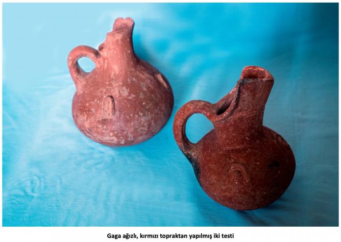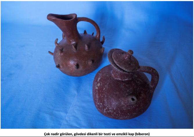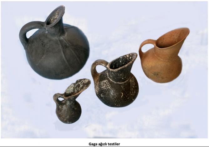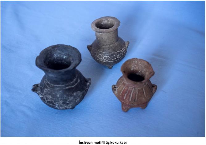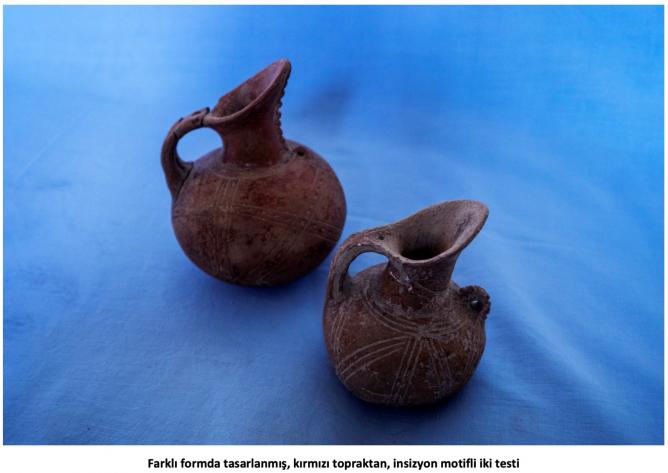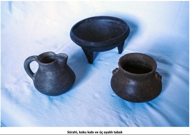 Henüz çömlekçi çarkının icat edilmediği dönemde bu, elle şekillendirilen siyah astarlı, parlak perdahlı bazı kapların yüzeyleri, beyaz boya ve silik astar üstüne işlenmiş geometrik, insizyon motifleri ile bezelidir. Bu çizgilerden bazılarının içleri beyaz macunla doldurulmuştur. Belli başlı pişmiş toprak eserler arasında gaga ya da kesik gaga ağızlı testiler, çanaklar, meyvelikler, boyunlu veya boyunsuz çömlekler, ördek biçiminde kaplar, koku kapları, ikili, üçlü veya dörtlü tuzluk benzeri kaplar, ayaklı ayaksız, bazıları kapaklı kaplar vb. sayılabilir.