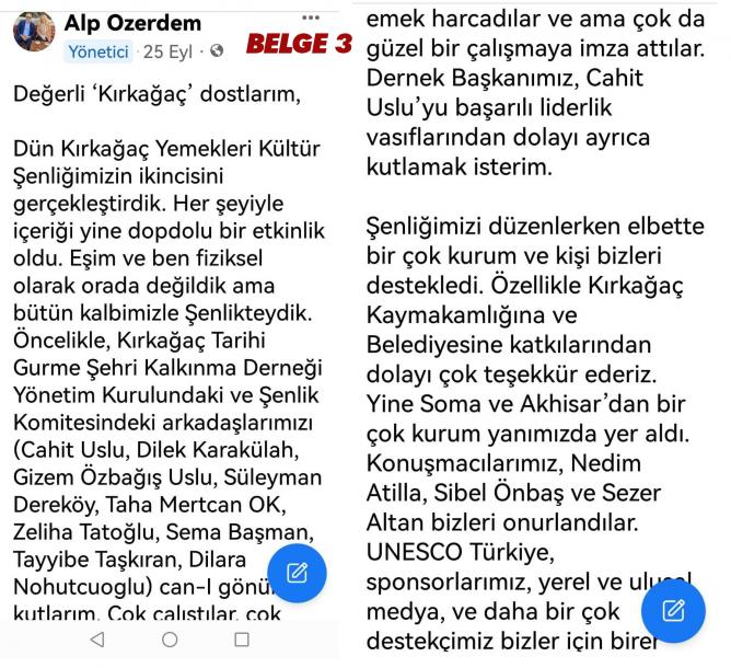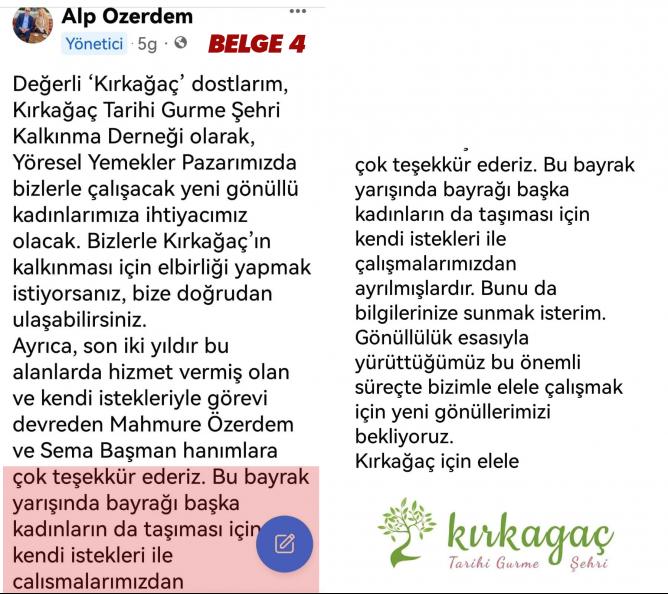 Burada, Kırkağaç'ta ki gurme ve gurme etkinliklerinde kimsenin kendilerine pay çıkaracak, bir konu kalmamış. Her şeyi beyfendinin kendisi yapmış. Ee haklı olarak kendilerinin yok sayılmasını sindiremiyor. Diğer paylaşımlarında da göreceğimiz gibi gereğini de yapıyor. İki hanımfendiyi kibarca (!) olayın dışına taşıyor.