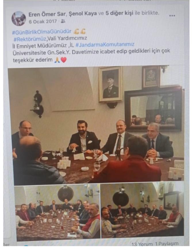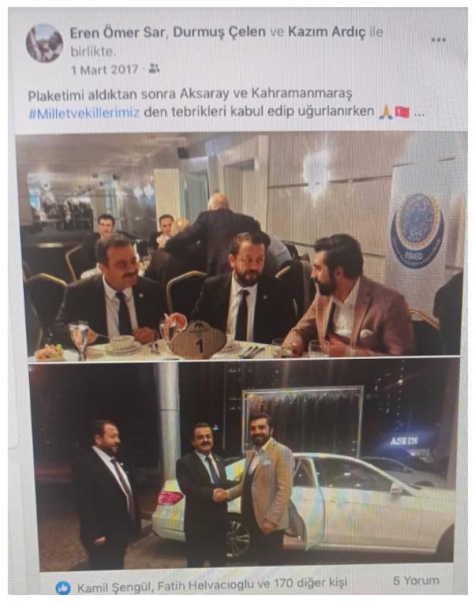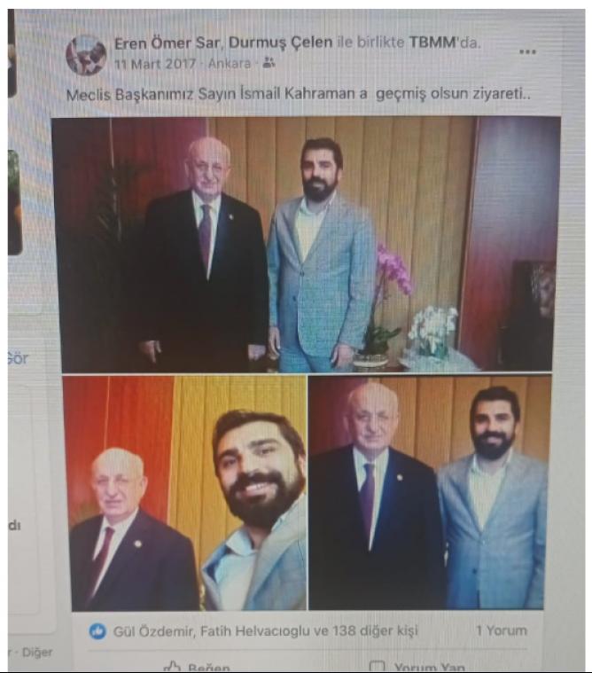 İddianamede, Eska Yapım Prodüksiyon Reklam ve Tanıtım A.Ş. isimli şirkette üye olarak kaydı bulunan Eren Şar'ın kendisini "saygın ve yardımsever işadamı" olarak tanıtmaya çalıştığı, bu şekilde kazandığı saygınlık ile devlette görevli üst düzey yetkilileri etkisi altına aldığı belirtildi. Şar'ın sürekli ünlü kişilerle, siyasette, emniyette, jandarmada ve yargıda görevli üst düzey devlet adamları ile fotoğraf çektirdiği, sosyal medya hesaplarında bu fotoğrafları paylaştığı kaydedildi.