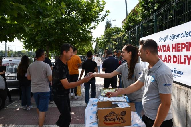 Manisa Büyükşehir Belediyesi, Yükseköğretim Kurumları Sınavı’nda öğrencileri ve velileri yalnız bırakmadı. Sınav saati öncesinde okulda öğrencileri ve ailelerini karşılayan Büyükşehir Belediyesi ekipleri çay, su, limonata ve kahve ikramında bulundu. Tüm yurtta olduğu gibi Manisa’da da Yükseköğretim Kurumları Sınavı (YKS) heyecanı yaşandı. Üniversite hayalleri için ter döken öğrenciler ve onları heyecanla bekleyen ailelerini Manisa Büyükşehir Belediyesi yalnız bırakmadı. Manisa Büyükşehir Belediyesi Sosyal Hizmetler Dairesi Başkanlığı ekipleri, öğrencilere ve ailelerine çay, su, limonata ve kahve ikramında bulunarak moral desteği verdi. Ekipler, okullarda 10 bin kişilik su, 5 bin kişilik limonata, çay ve kahve ikramında bulundu.