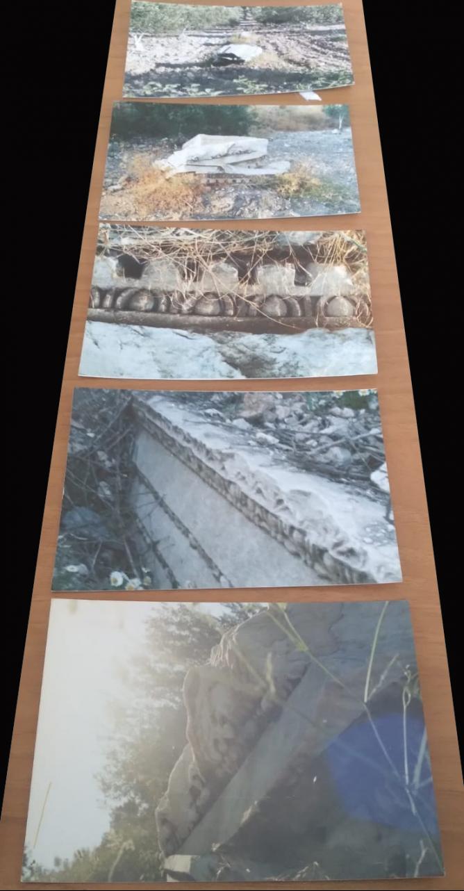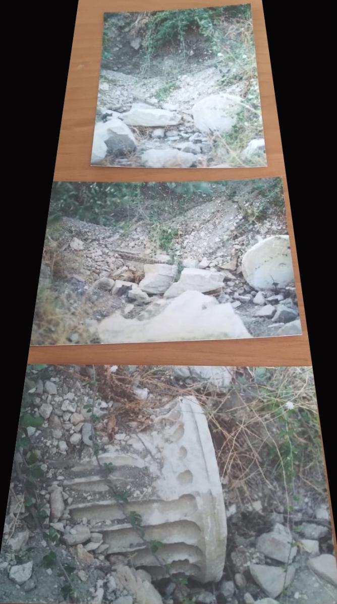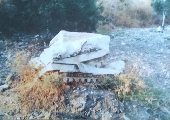 Harta mevkiinde zeytintinlikte bulunan mermer sütün ve diğer parçalar.