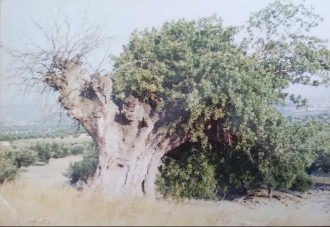 Harta da kaçak kazı ile yapmalanmış "Yığma Mezar" ın üstünde mezarla aynı yaşta olduğu tahmin edilen Çitlenbik Ağacı