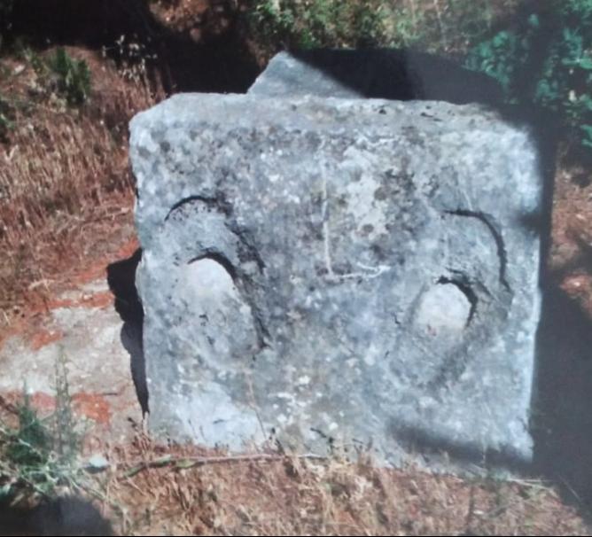 Yağmurlu Köyü Mezarlığından bir sütun ve Heykel kaidesi.