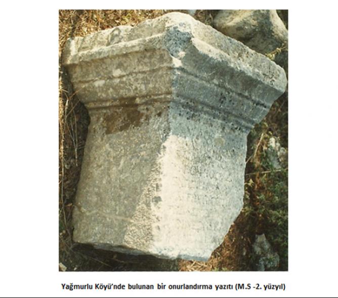 ![]() Öte yandan bir süre önce Prof. H.Malay tarafından Yatağan Köyü’nde bulunan diğer bir yazıtta da Nakrasiteai’dan "Nakrasonlular" dan söz edilmesi, bu yerleşimin Yatağan Köyü’nde yer almış olabileceğini de düşündürmektedir. Nitekim Yatağan Köyü’nün kuzeyindeki bazı tarlalarda bol miktarda mimari eleman ve seramik buluntuları ele geçmektedir. Öte yandan, yine bazı yazıtlar bize, yine bu bölgede Akrasos şeklinde bir başka yerleşim ve Kareneitai şeklinde bir köy halkından söz etmektedir. Bu durumda Nakrason’un ( veya Nakrasos’un) Yatağan’da mı , yoksa Bakır civarında mı olduğunu bilmek için yeni buluntulara ihtiyaç vardır.
