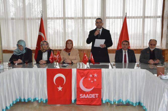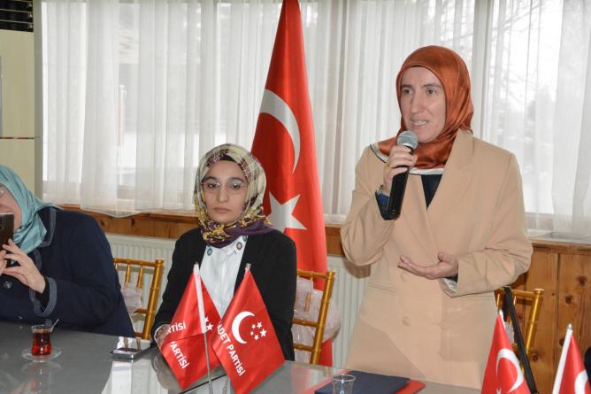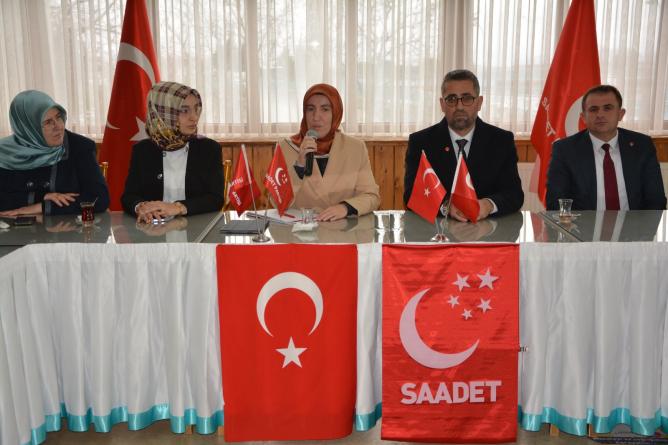 Saadet Partisi Kadın Kolları Başkanı Nurgül Beytiye Ekinci, insan olma hassasiyetinin yitirilmemesi gerektiğini belirterek ancak AK Parti nedeniyle Anadolu irfanını görebilme yetisinin kaybedildiğini ifade etti. Ekinci, "Bir devletin bekası Cumhurbaşkanının ifade ettiği gibi terörle mücadeleden geçmekle birlikte bir devletin bekası devlet kalabilmeyi bilmekten geçer. Devlet kalmayı bilemiyorsanız kaos olur. Bugün sıcak savaş yok deniliyor ama Filistin'de de, Suriye'de de, Irak'ta da, Malezya'da da ne yazık ki sıcak savaşı yaşıyoruz. 3. Dünya Savaşı 1990'lı yıllardan itibaren fark etmeden devam ediyor" dedi.
