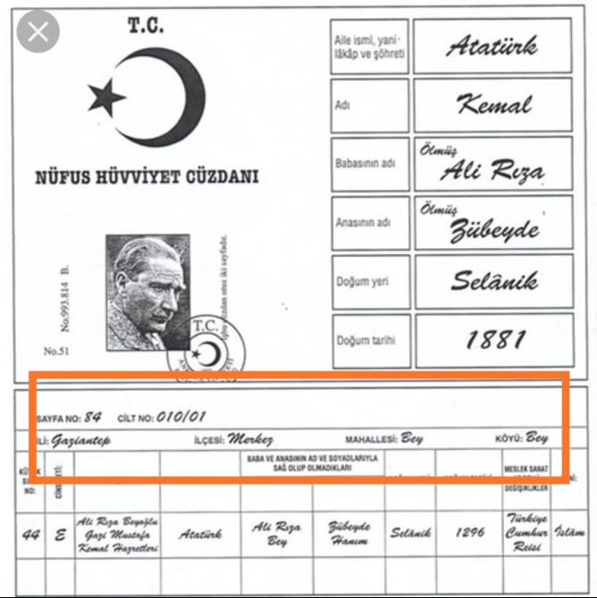 Mustafa Kemaşl Atatürk'ün nüfus cüzdanınıda görelim bari;