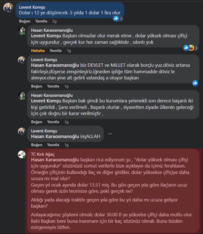Başkan uzattım sen gel bize şu “YÜKSEK DOLAR ÇİFTÇİYE UYGUNDUR” teorini açıkla. Bizde sana inanıp gavur parasından sıkılmayalım.