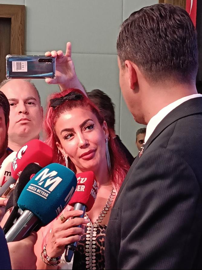 Manisa medyası olarak oraya toplanan arkadaşların acemiliğine mi, yoksa toplantıyı idare eden görevlilerin iş bilmezliğine mi sayalım bilemedim, Başkan Zeyrek kuşatma altında gibiydi. Hani mikrofonları ağzına soktular demek abartı sayılmaz. Hele bir örnek vardı, boyaları akan makyajıyla bir muhabir vardı ki çok gülünç ve ‘ne yapabiliri’ ortadaydı. Bunların hiç biri makul bir basın açıklaması, ya izlememişler ya da o, toplantıyı provoke etmek için oradaydılar. Aşağıda ki fotoğrafa bakınca ne demek istediğimi anlayacaksınız. Oraya gazeteci birikimiyle mi gelmiş yoksa eski Yeşilçam filmlerinde oynayan 3. Sınıf vamp kadınlar gibi avına bakan bir avcı mı, varın siz düşünün. O ne makyaj, o ne rüküşlük yani?